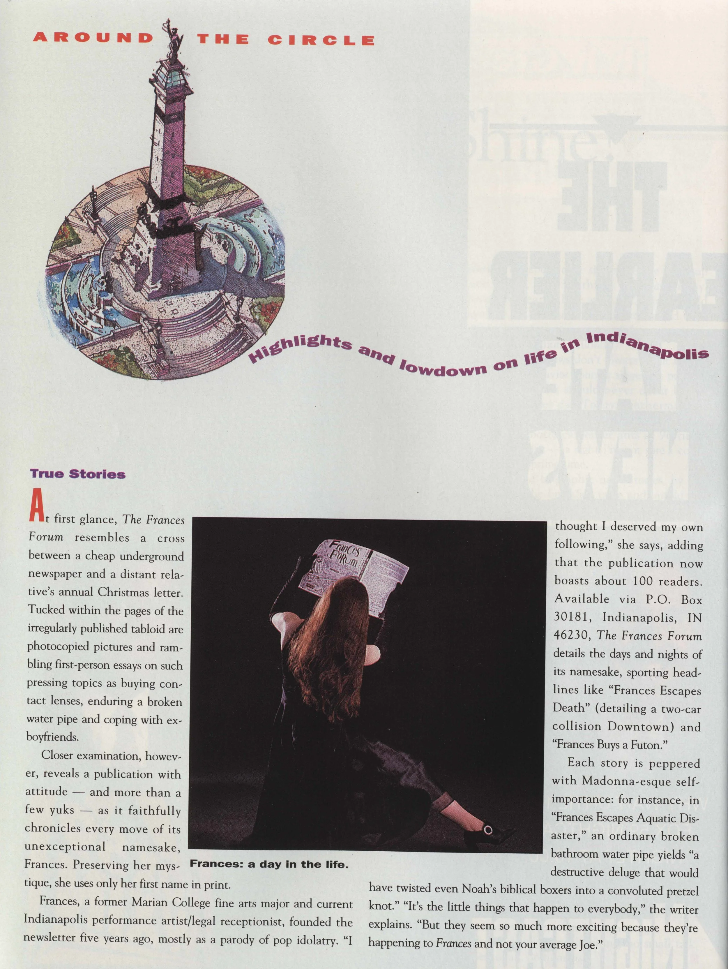 The newsletter was important to my development as an artist and helped launched my professional writing career. Indianapolis Monthly magazine first featured me in their glossy pages, and later hired me as a contributing editor.